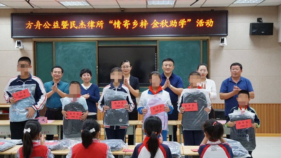 滨州方舟公益暨山东民杰律师事务所慰问了沾化区利国乡20名贫困学生,发放助学金20000元及爱心书包等物品。