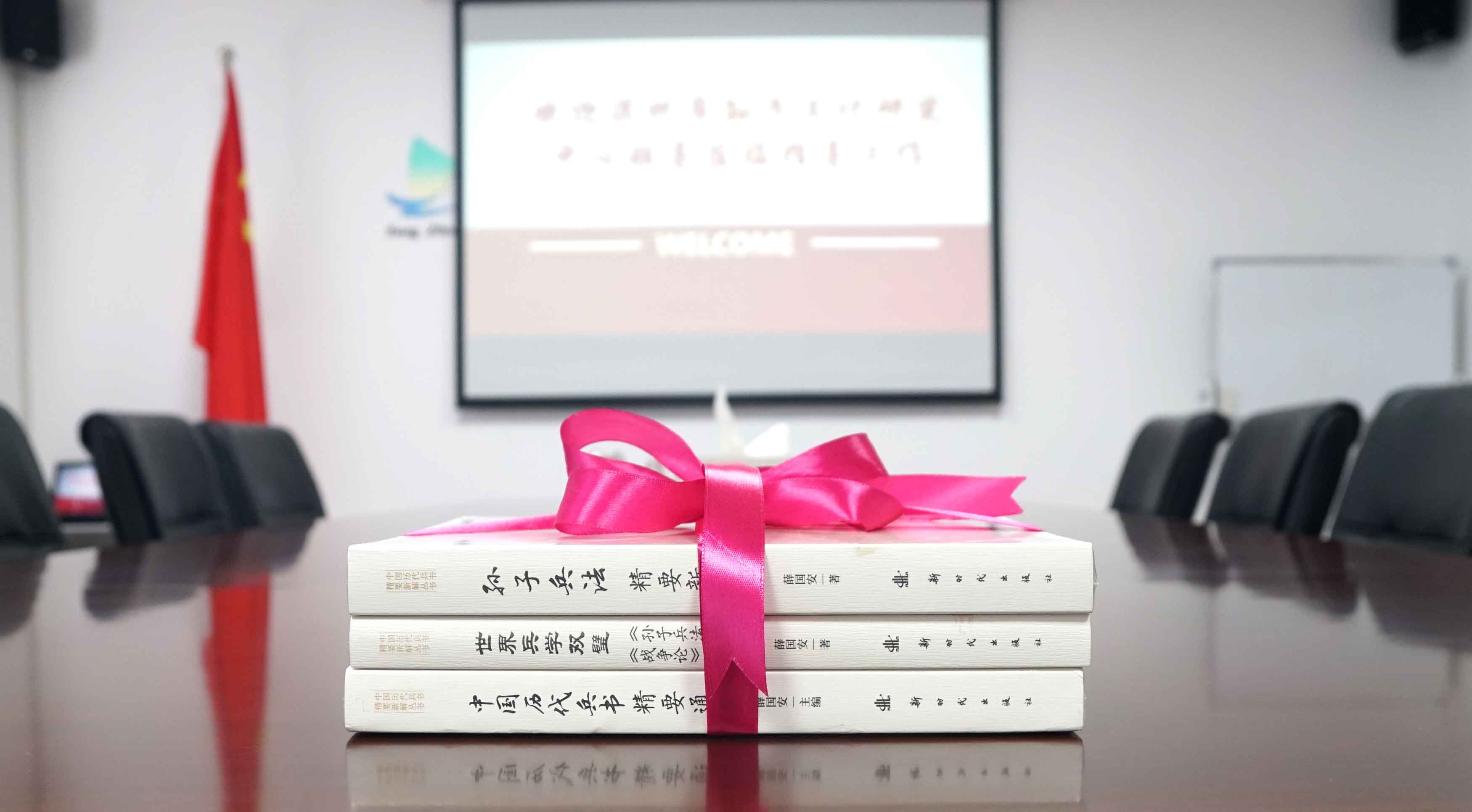 刘磊主任向王洪凯董事长赠送了国防大学薛国安教授撰写的《孙子兵法》一书。